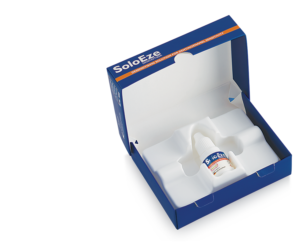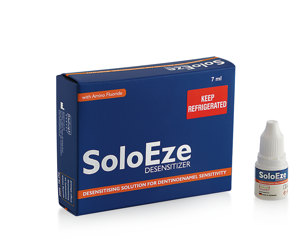 SoloEze is a Hema Free Desensitizing solution Prevents and rapidly alleviates enamel and dentinal hypersensitivity when filling and cementing, for temporary restorations, sensitive cervical areas.