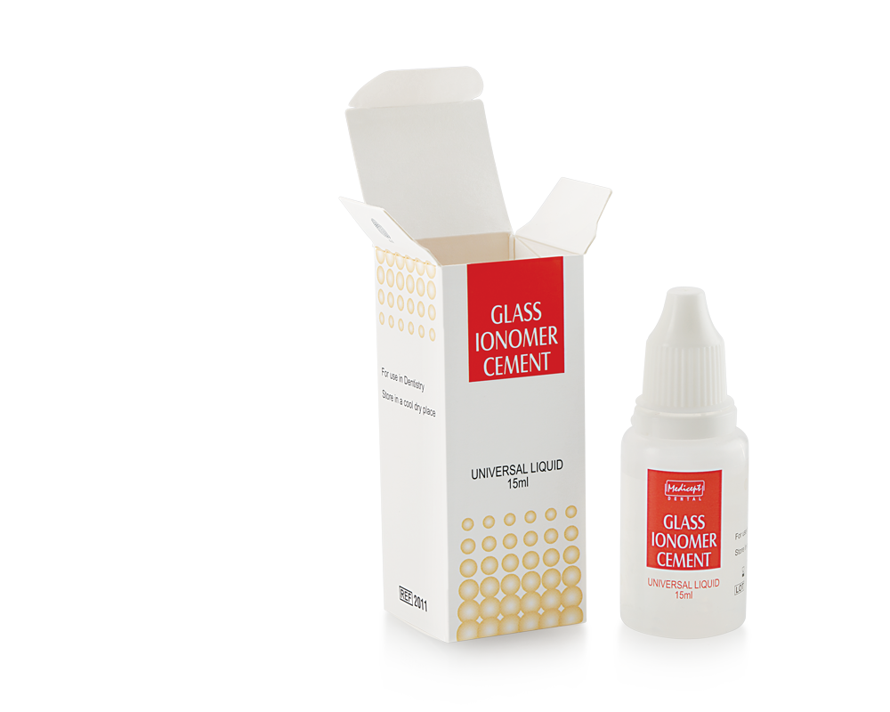 A Universal Glass lonomer Liquid which can be used with glass ionomer restorative and luting.