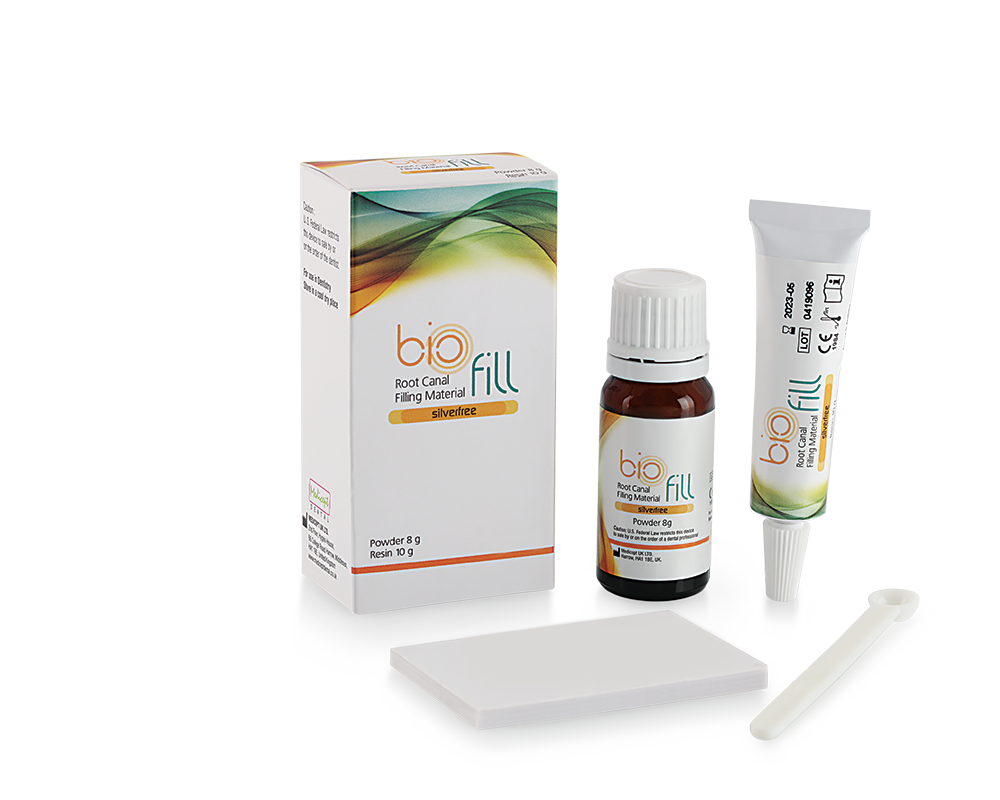 Root Canal Sealing and Filling Materials Biofill powder and resin are mixed to produce a root canal filling material of excellent sealing capacity. As a result of its close adaptation to the root canal walls and its very small contraction during setting, Biofill allows tightly sealing root canal obturation of excellent tissue compatibility.